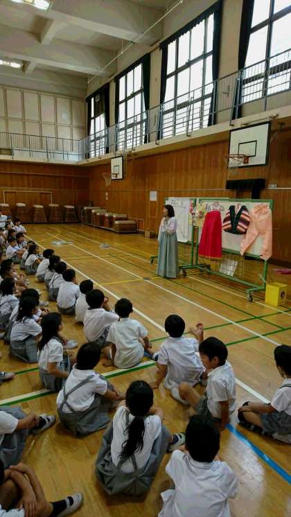 本日は、韓国・朝鮮について知り、体験する学習を行いました。ゲストティーチャーを招いてたくさんのお話を聞かせていただきました。中でもやっぱり遊びは楽しいものです。水泳後にも関わらず、力いっぱい楽しむことができました。