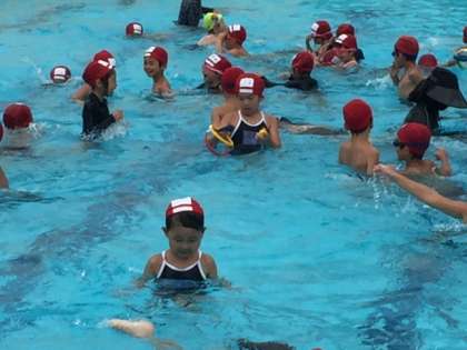 今日は「宝探し」遊びをしました。ゴムボールやリングなどの「お宝」をもぐってたくさん拾い集めました。みんな、自分のクラスを一生懸命応援して、必死になってもぐりました。楽しい1学期の水泳のしめくくりになりました!