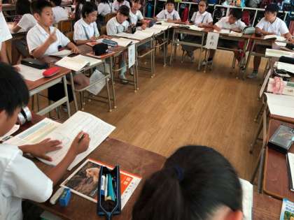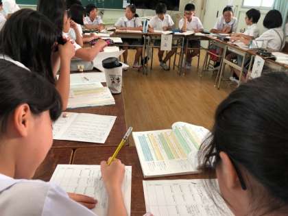 司会や審判担当もおり、みんなが発言する友達の意見に耳を傾けています。