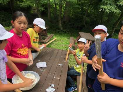 この時間、生地をこねたり、棒にアルミ箔を巻いたりしています。
