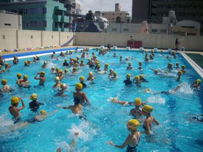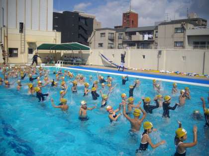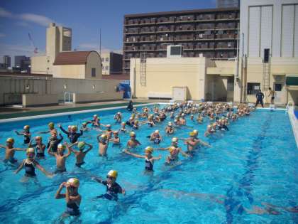 低学年最後のプールということで、水に慣れるための「アヒルの体操」も最後になります。