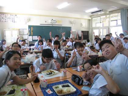 ◎ 感想にどんどん手が上がり、すぐに食缶がカラッポになった給食大好き学級で、笑顔いっぱいのクラスでした!