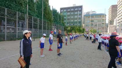 金曜日の児童集会は、運動会前ということで、ラジオ体操集会でした。