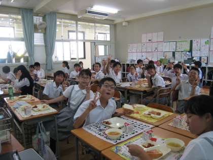 ◎ 感想にどんどん手が上がり、すぐに食缶がカラッポになった給食大好き学級で、笑顔いっぱいのクラスでした!
