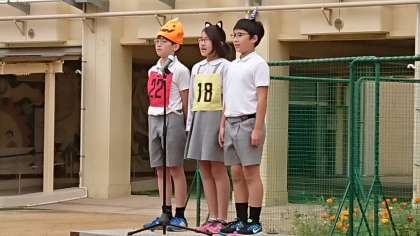 集会委員会のみんなが、運動会の競技をジェスチャーして、競技名を当てます。