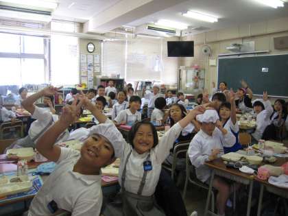◎ 感想にどんどん手が上がり、おかわりに行列が出来、すぐに食缶がカラッポになった給食大好き学級で、笑顔いっぱいのクラスでした!