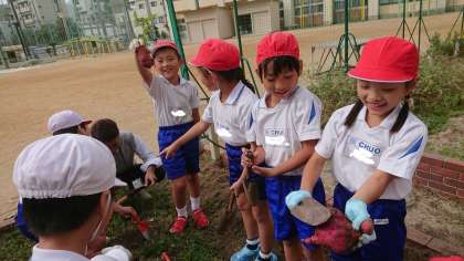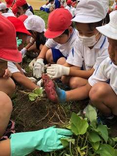 「大きいのが獲れた!」「根っこをたどっていったら、お芋があった!」と、収穫の喜びを味わうことができました。