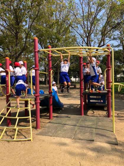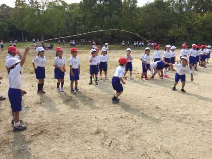 広い公園で、長縄や鬼ごっこをしたり、虫を捕まえたりしました。