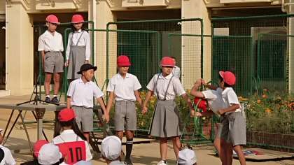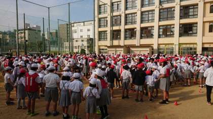 金曜日の児童集会では、「フラフープくぐり」をしました。