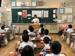 2年生全員で、歯科衛生士さんをお招きし、歯磨き指導を受けました。