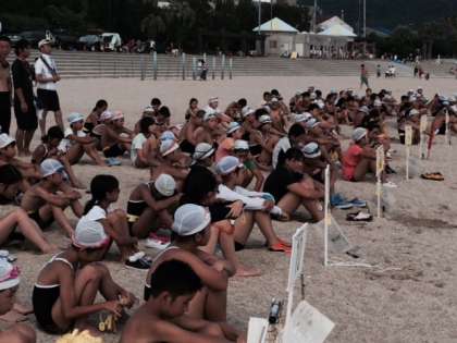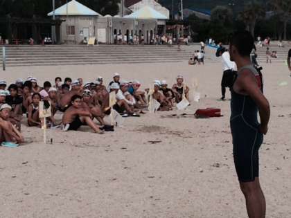 遠泳をする前の注意をしっかりと。