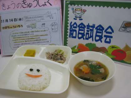 『学校給食試食会 開催!』プリンより人気のある和風デザート『かぼちゃういろう』も味わっていただきました!(1005食 作りました! 11/14)