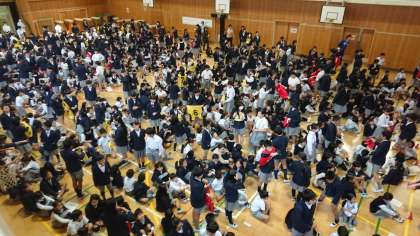 6年生から5年生にたてわり班のリーダーゼッケンを引き継ぎました。次の最高学年として、班を引っ張っていってほしいと思います。