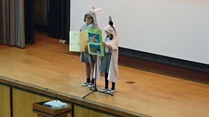低・中・高学年の人気の本ランキングの発表がありました。発表するスライドや、セリフ、動きなどを工夫して、発表は大盛り上がりでした。
