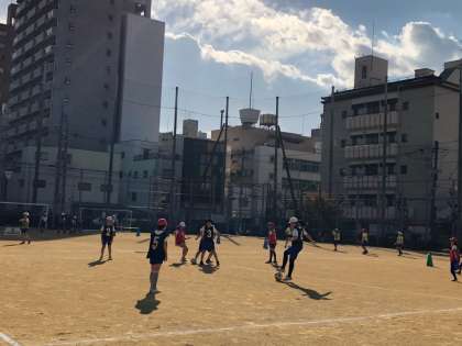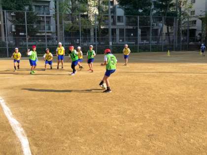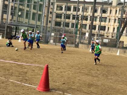 点が入るたびに、子どもたちは大喜びです!さらに、チーム全員が得点するとボーナス点2点!というルールなので、子どもたちはより力を合わせてパスを回したり、声をかけあったりしています。