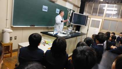 科学館から、ゲストティーチャーに来ていただきました。水の性質を使って風船を膨らますなど、子どもたちが驚くような実験をたくさんしていただきました。水蒸気と湯気の違いが分かり、子どもたちは楽しく学びました。