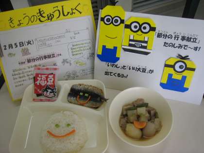 ☆ ごはんがよく進む和風献立の組み合わせで、他の学年からも「おいしかったヨッ!」の報告がたくさん寄せられた節分の行事献立でした!