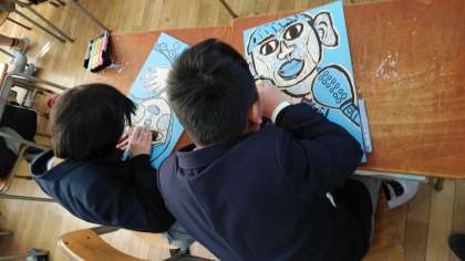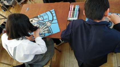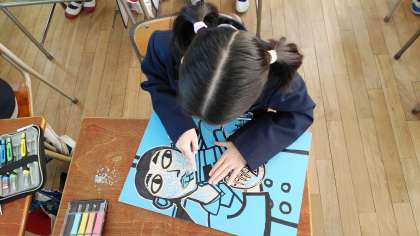 4年生は、彫刻刀を使っての木版画にチャレンジしています。 初めは緊張し、ドキドキしながら彫っていた子どもたちでしたが、今では、こつをつかみ慣れた手つきで彫り進めています。作品のできあがりが楽しみです。