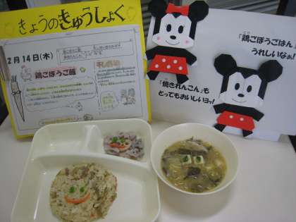 『鶏ごぼうご飯』と『焼きれんこん』に大いに盛り上がりました!(2/14の給食)