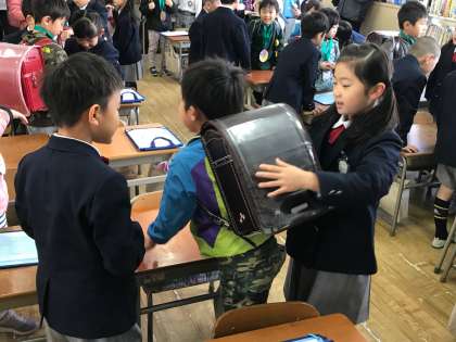 学校の中を探検したり、ランドセルを背負わせてあげたり、ゲームをするなどして、楽しい時間を過ごしました。
