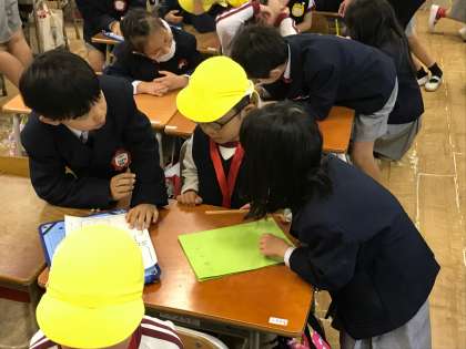 2月21日(木)、1年生は、桃園幼稚園、あゆみ保育園、生魂幼稚園、中央なにわ幼稚園の年長のお友だちを招待しました。