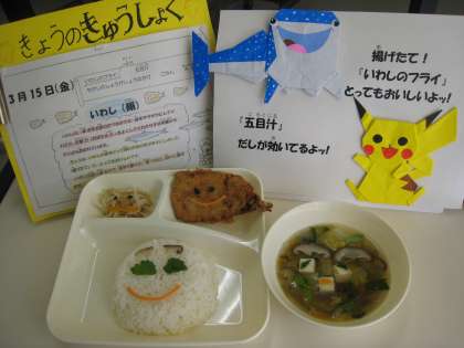 ☆ ごはんがよく進む献立の組み合わせで、他の学年からも元気よく「骨がなく、サクサクのいわしフライがおいしかったよッ!」の声がたくさん報告されました!