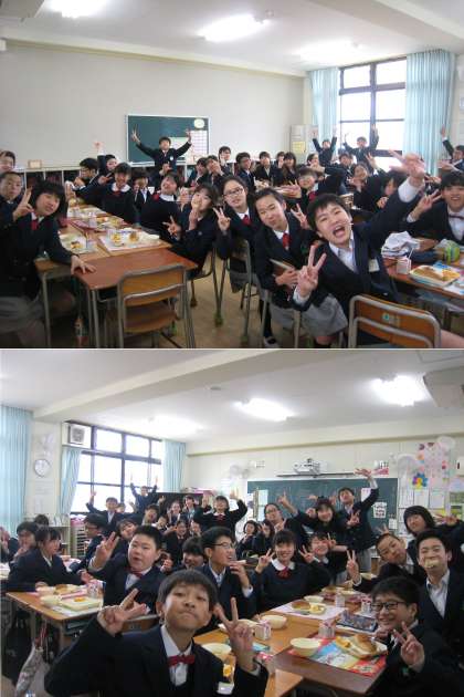 入学してから1100回を超える中央小の給食が最後となった6年生の教室で・・・