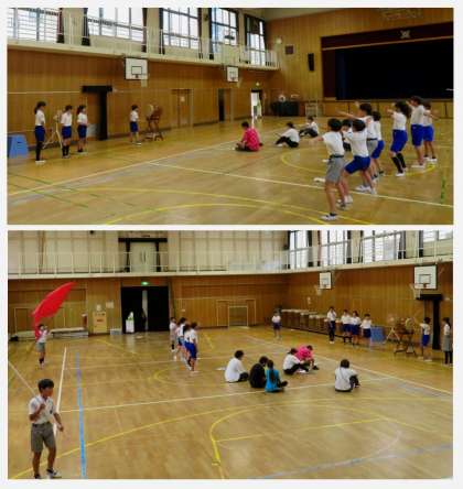 6年生の希望者で編成された応援団。体育科学習発表会にむけて、20分休みや昼休みに練習を重ねています。がんばれ、応援団!
