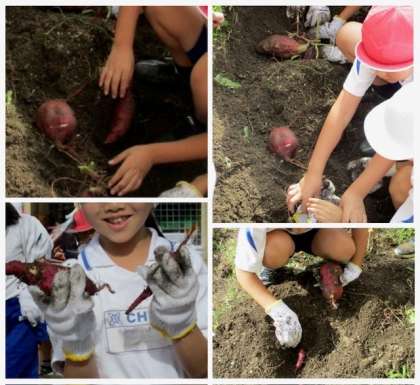 学習園で育てていたサツマイモを、いよいよ掘って収穫しました。