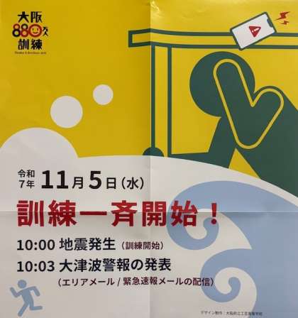 「世界津波の日」である本日、大阪府で南海トラフ巨大地震を想定した大阪880万人訓練が実施されました。本校でも、これに合わせて、地震・津波の避難訓練を実施しました。