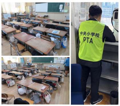 ◇ 屋外スピーカーからのお知らせを聞いた後、素早く机の下に隠れる1年生