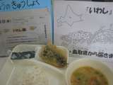 今日のメニューは「いわしのフライ(年1回)、みそ汁、焼きのり、ごはん、牛乳」で...
