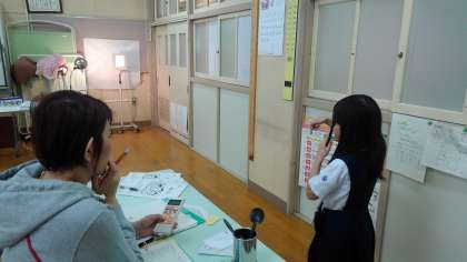 毎日・毎時間のように、いろいろなクラスが代わる代わる保健室に入っていきます。
