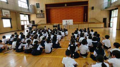 曲にはリズムやかっこいい伴奏がついていて、子どもたちはノリノリで吹いていました。