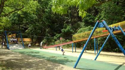 お昼ごはんも皆でなかよく食べられました。中には、おなかがいっぱいでおやつが食べ切れない子もいました。が、そこはやっぱり元気な子ども、食べ終わるとすぐに遊具に走っていきました。