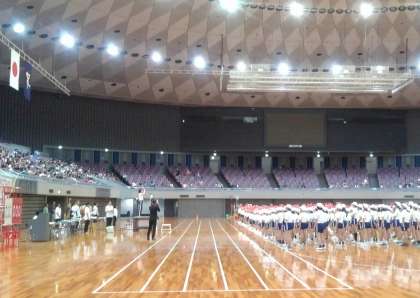 今年度は学校の運動場ではなく、朝潮橋にある大阪市立中央体育館で、運動会を行いました。