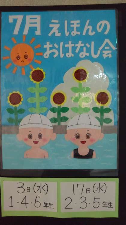玄関のところに、毎月の案内なども貼っています。子どもたちの読書の世界が広がっていっています。本当にありがとうございます。