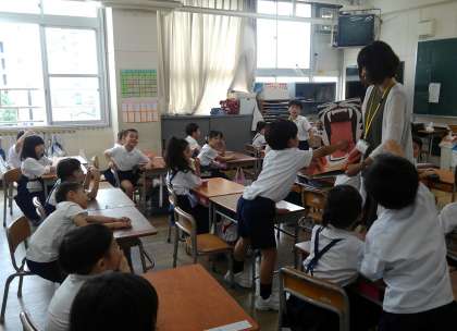 朝の時間を活用して「ぴっくぶーぶー」の皆さんが、絵本の読み聞かせを行っていただいています。本の内容によっては、英語で読んでくださったり、体験型になっていたりしています。