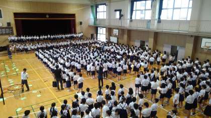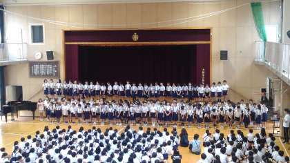 今日は朝から、講堂中にきれいな歌声が響き渡りました。久しぶりのフレンズ集会で、熱気もこもってきました。