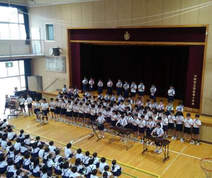 また、全校児童合わせて約630人もの声を合わせる歌声は、圧巻でした。講堂中を響かせて、音楽の良さがこれからも西船場じゅうに広がればと思います。