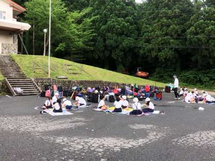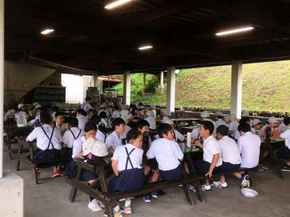 5年生の子どもたちが鉢伏高原に林間学習に出発しました。天気が心配されましたが、現地では雨が止んでいたので、屋外でもお弁当を食べることができました!