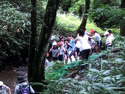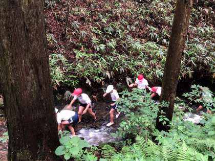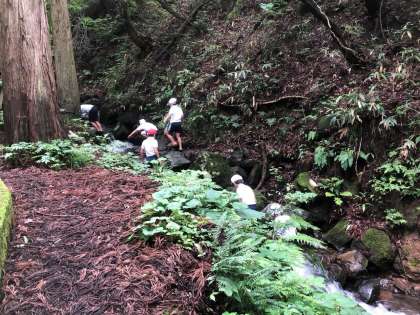 沢登りの様子です。自然の中で、みんな楽しそうです(^^)