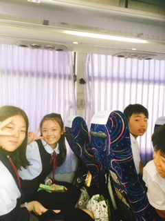 バスの中はレクリエーションやカラオケで盛り上がっています!