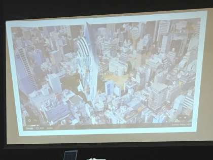 もしも西船場小学校の近くに船がきたら、どれくらいの大きさになるのかな?(学校全体よりも広く、高さは12階まである船もあるそうです。)