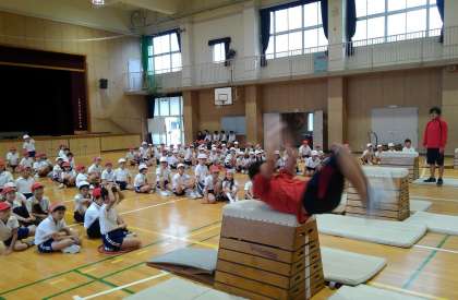 先日の「西区体力向上支援事業」で教わったこともあり、4年生はマットと跳び箱に取り組んでいます。