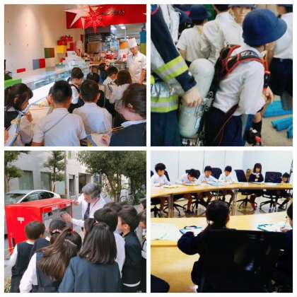 郵便局や消防署、肥後橋駅やケーキ屋さん等、各クラス2店ずつまわりました。