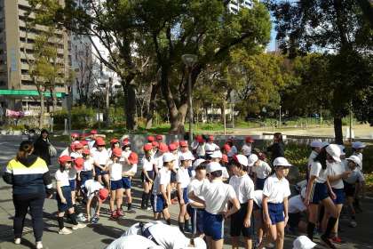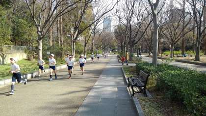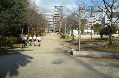 学年に応じた距離を設定して、緑豊かなうつぼ公園を駆け巡ります。