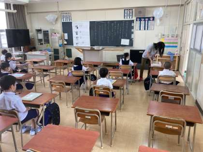 今日は待ちに待った登校日。2年生のみなさんに会えるのをとても楽しみに、わくわくドキドキしていました。教室でそれぞれの担任と「はじめまして」「よろしくね」とスタート!! 子どもたちも、初めは緊張の面持ちでしたが、ひさしぶりの学校、お友達に会えて、笑顔があふれていました。