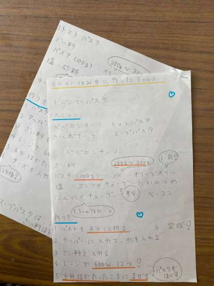 お家で作った料理のレシピをまとめてくれました。