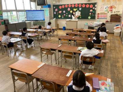 1年生も登校日が始まりました。今日は、AグループとBグループが登校しました。少し緊張気味の様子でしたが、ランドセルを背負う姿は、ようやく小学生になったといううれしさでいっぱいだったようにも思えました。